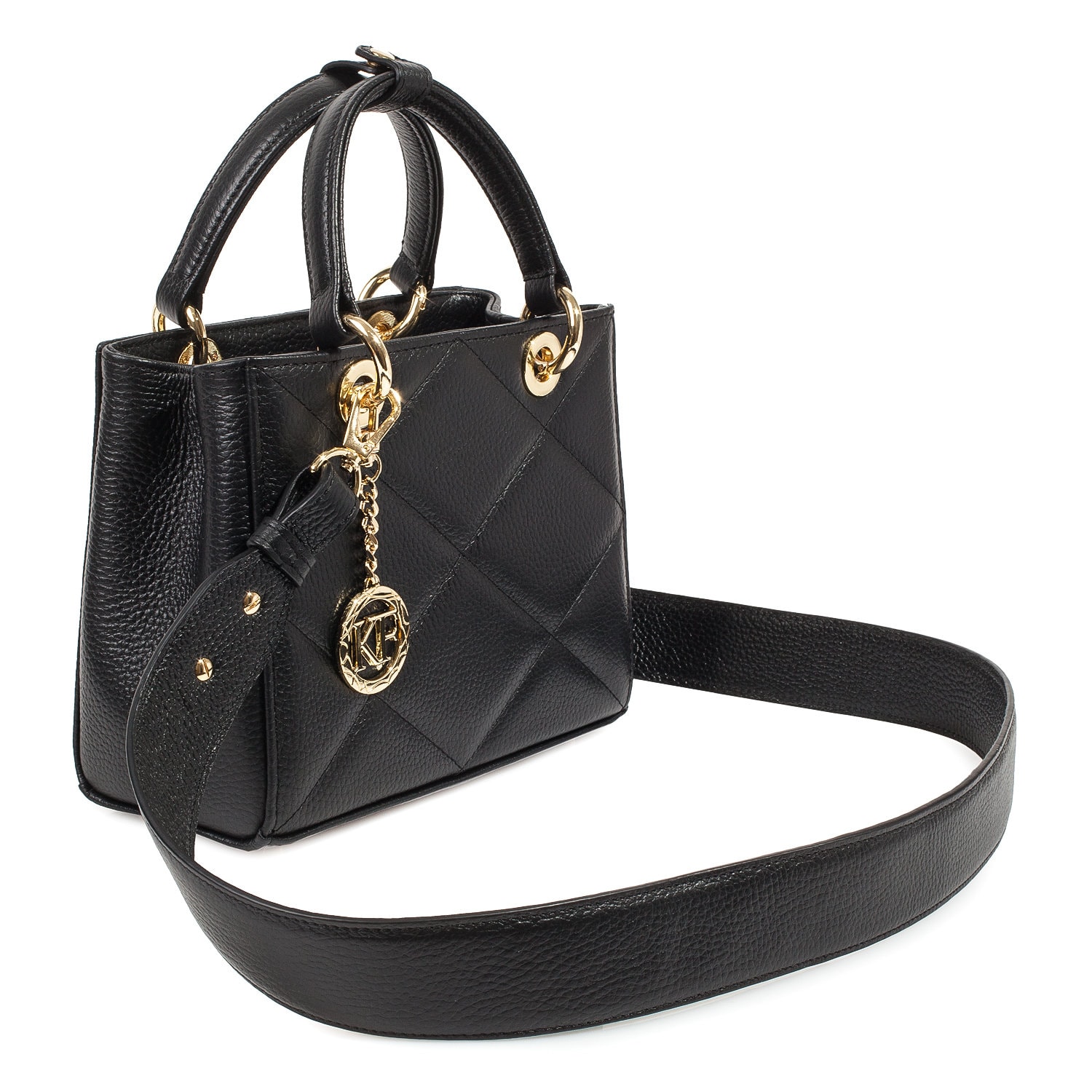 Leather Top Handle Bag, Black Leather Handbag Top Handle, Women's Leather Bag KF-4047