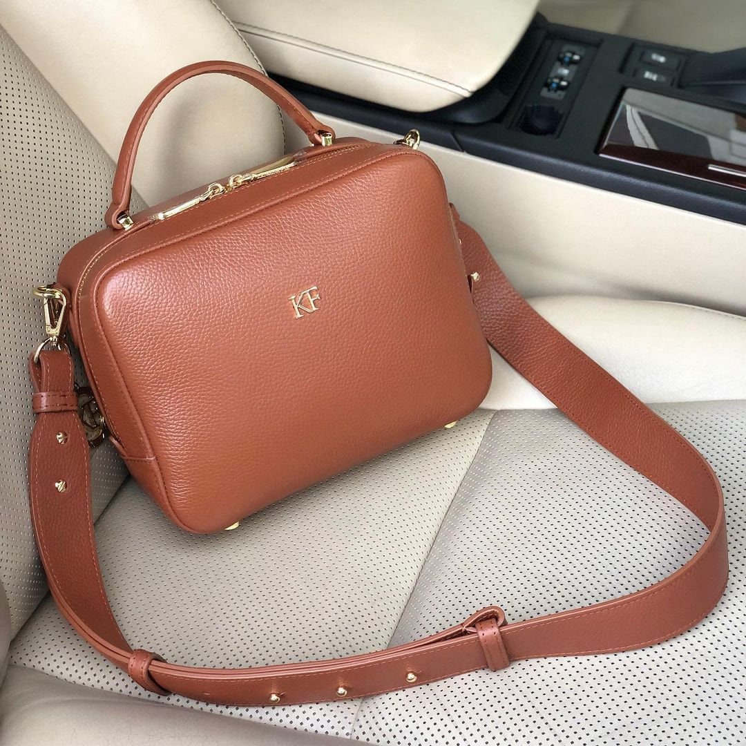 Women's leather doctor bag made of genuine leather, hardware with galvanic coating and microfiber lining. The internal space of a bag is equipped with one spacious compartment, one patch-pocket and one zipper pocket. The bag is closed with a clasp. The kit also includes a storage bag.