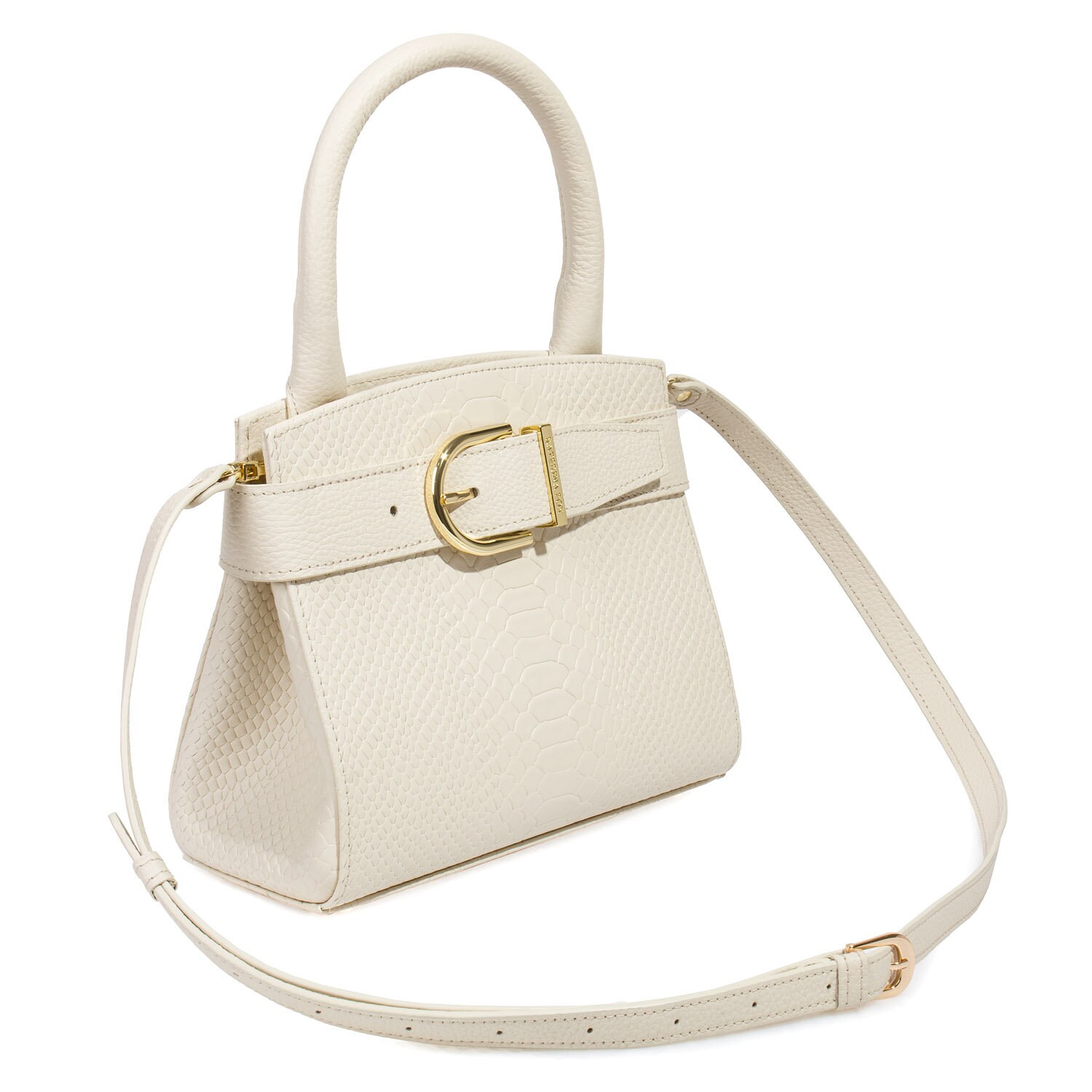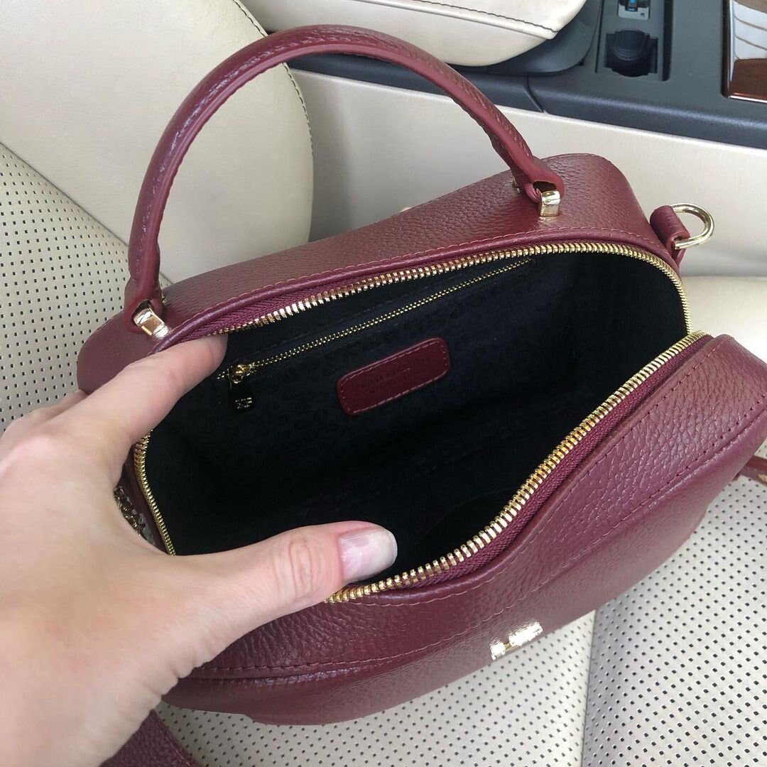Women's leather bag made of genuine leather, hardware with galvanic coating and microfiber lining. The internal space of a bag is equipped with three compartments, one compartment and two side pockets, one with a zipper. §³loses with 3 magnet buttons. The bottom of the bag is protected with metal legs. There is a long handle that allows you to wear the bag on the shoulder. The kit also includes a storage bag.