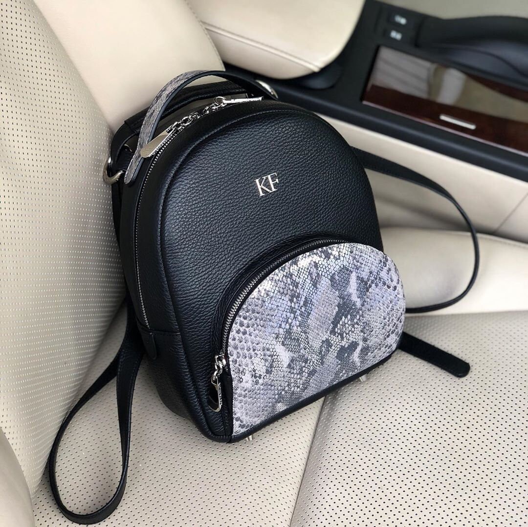 Black genuine leather backpack from ukrainian designer Katerina Fox, which perfectly combines sleek design, functionality and comfort. Despite its small size, it is very roomy. One large internal compartment, one zipper pocket for small items and one patch pockets, backpack closes with a zipper. Outside there is a zipper pocket. The shoulder straps are adjustable, giving You the option to lock in the most comfortable position.