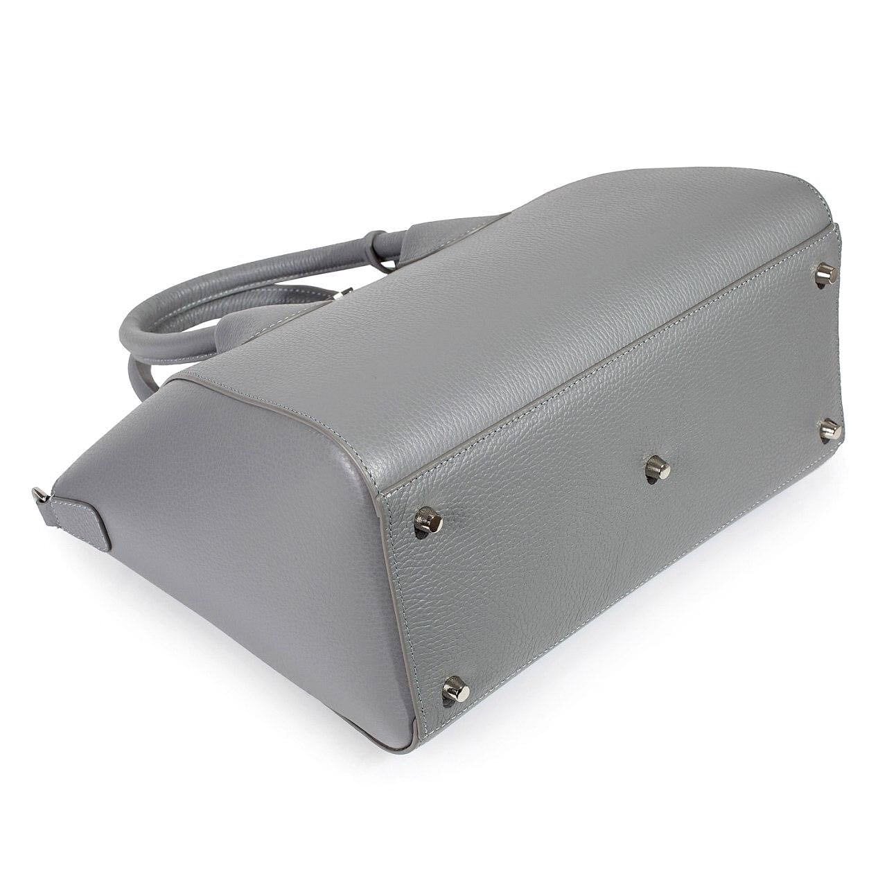 Dark gray genuine leather woman handbag from ukrainian designer Katerina Fox , ideally combines the black crocodile print genuine leather and black leather trim which allows luxurious look and is perfect for any style . Roomy, comfortable bag has sturdy leather handles and includes adjustable long leather handle . All hardware what we use is good quality,reliable and durable. Inside the bag one large compartment , two patch pockets and one zip pocket, bag closes with a zipper . The bottom of the bag is protected by metal legs . This model looks very solid and stylish!